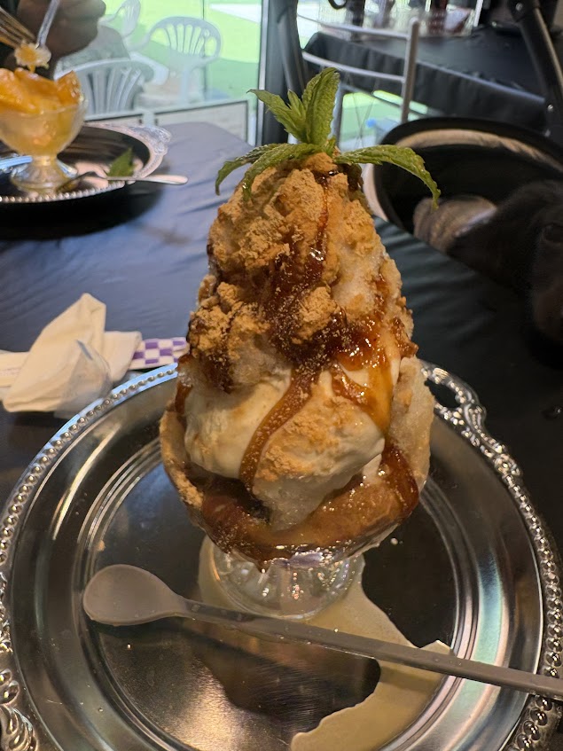 黒蜜きな粉のかき氷のハーフを頼みました。